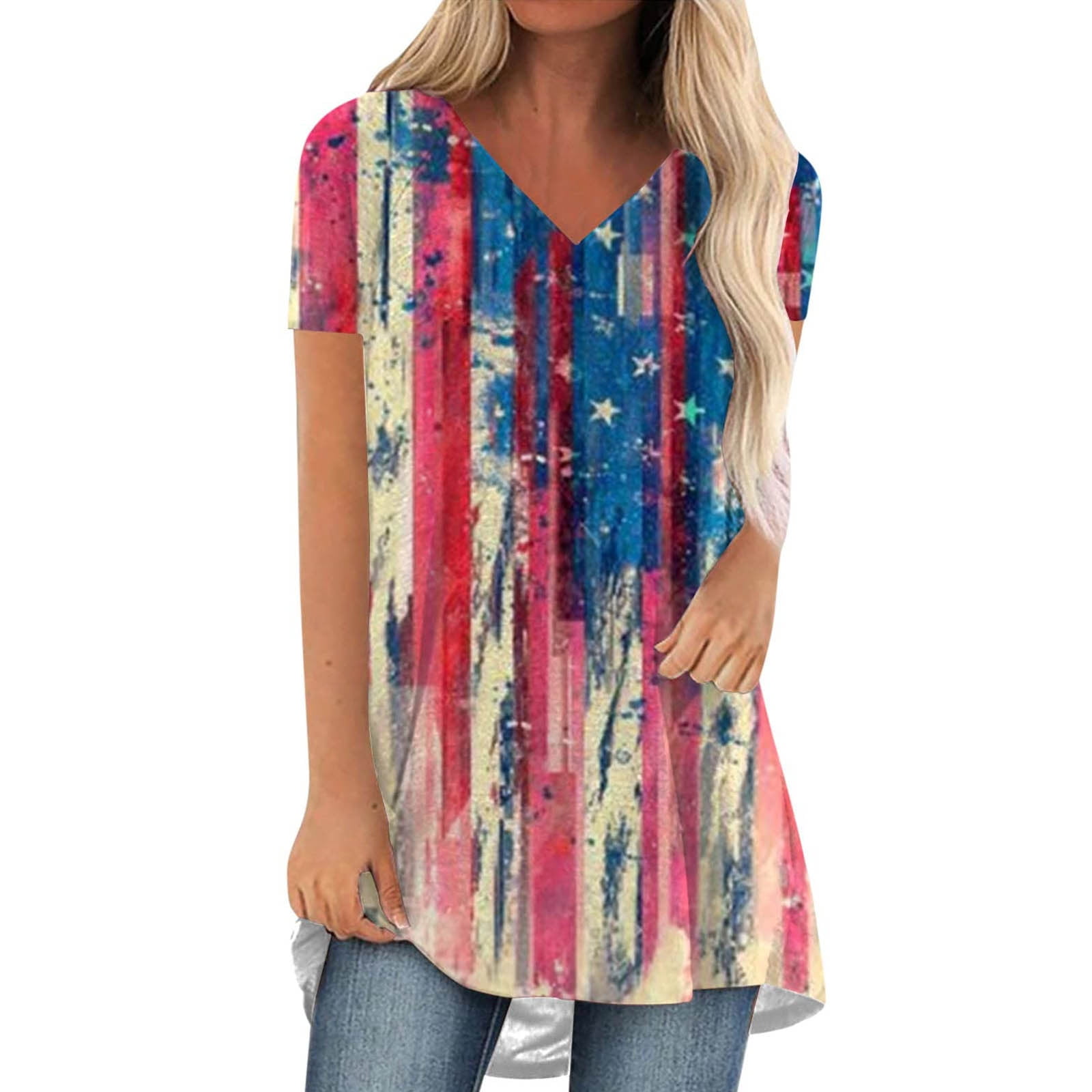 Womens T Shirts 4th Of July Independence Day Printing Casual V Neck Summer Short Sleeve Casual Blouse T Shirt Tops Walmart Com